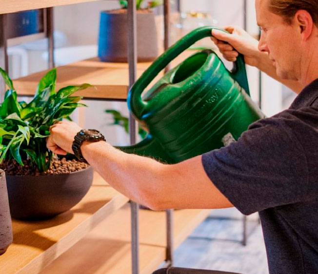 Elke vier weken wordt door Planting Power onderhoud aan de interieurbeplanting uitgevoerd. We controleren het watergeefsysteem, vullen de voeding bij, snoeien de planten, enten nieuwe stekjes in de wand en voeren preventieve gewasbescherming uit. Zo blijft de groene probleemoplosser in perfecte staat.