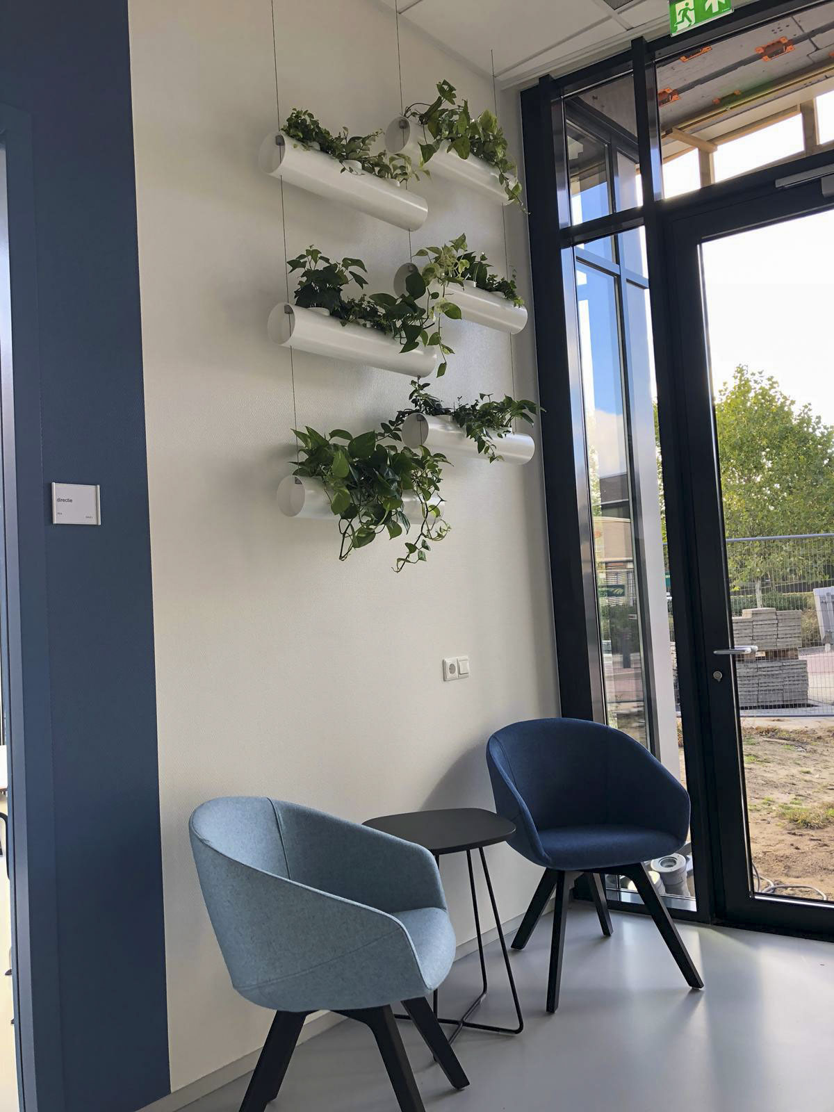 Wanneer de ruimte op de vloer te wensen over laat of als de muur wel een kleurtje kan gebruiken is een Hanging Garden een prima oplossing om toch planten in het kantoor te realiseren. De buizen kunnen op verschillende manieren worden gecombineerd en beplant met hangplanten of opgroeiende planten. Het is daarnaast ook een interessant alternatief voor een plantenwand.