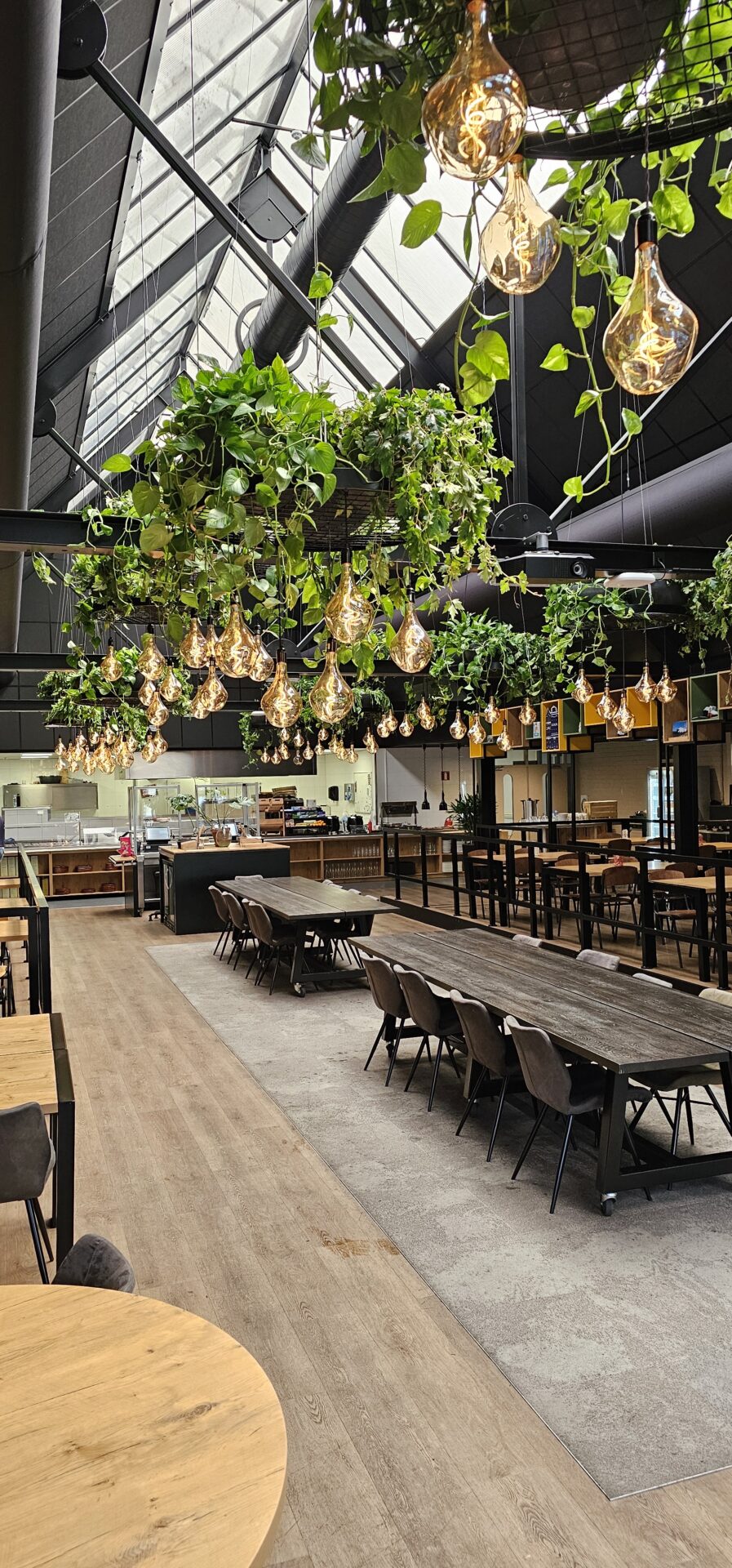 Hieronder beelden van een project wat wij hebben mogen doen voor een kantine, waarbij wij de kroonluchters voorzien hebben van hangplanten.