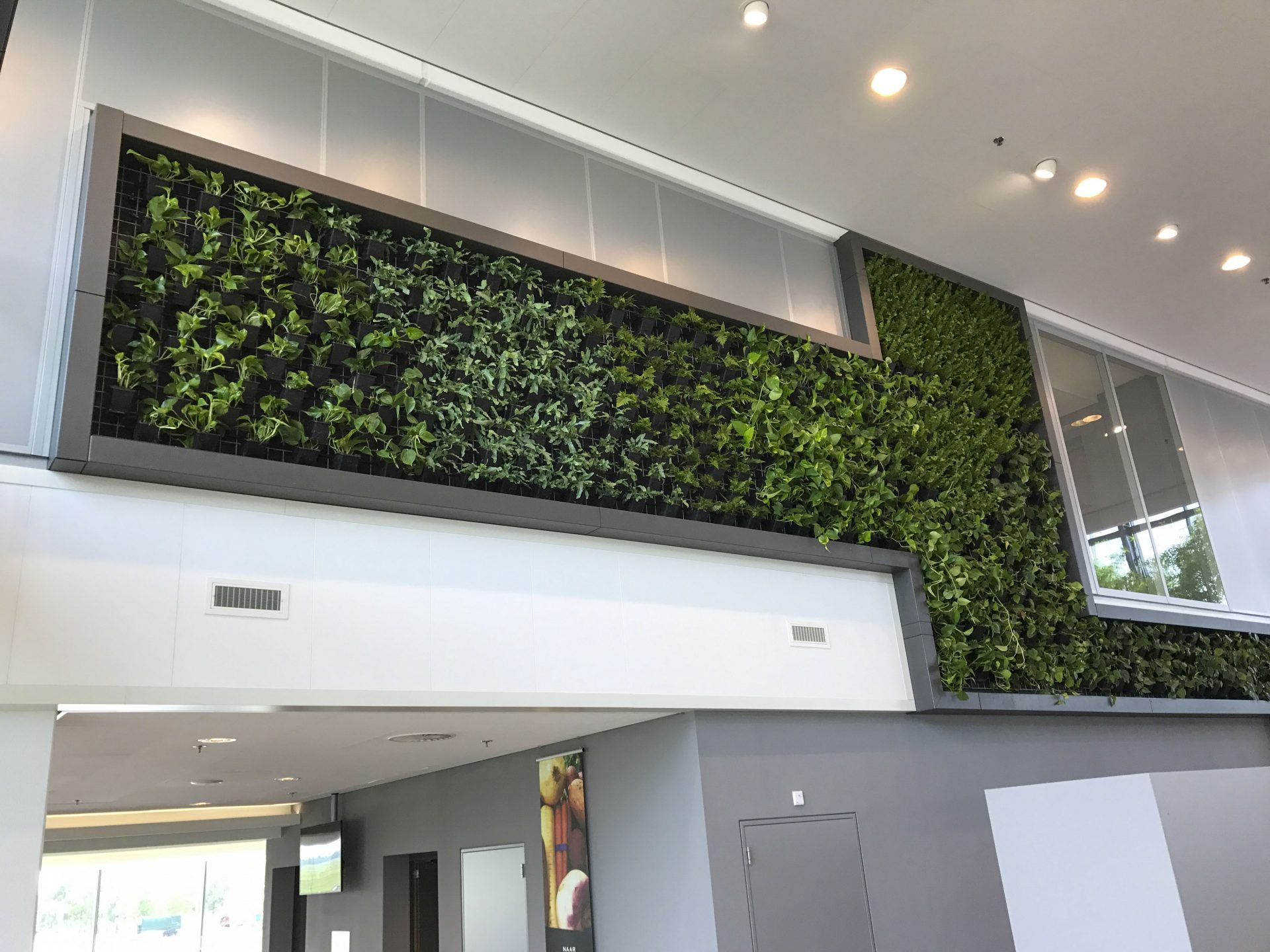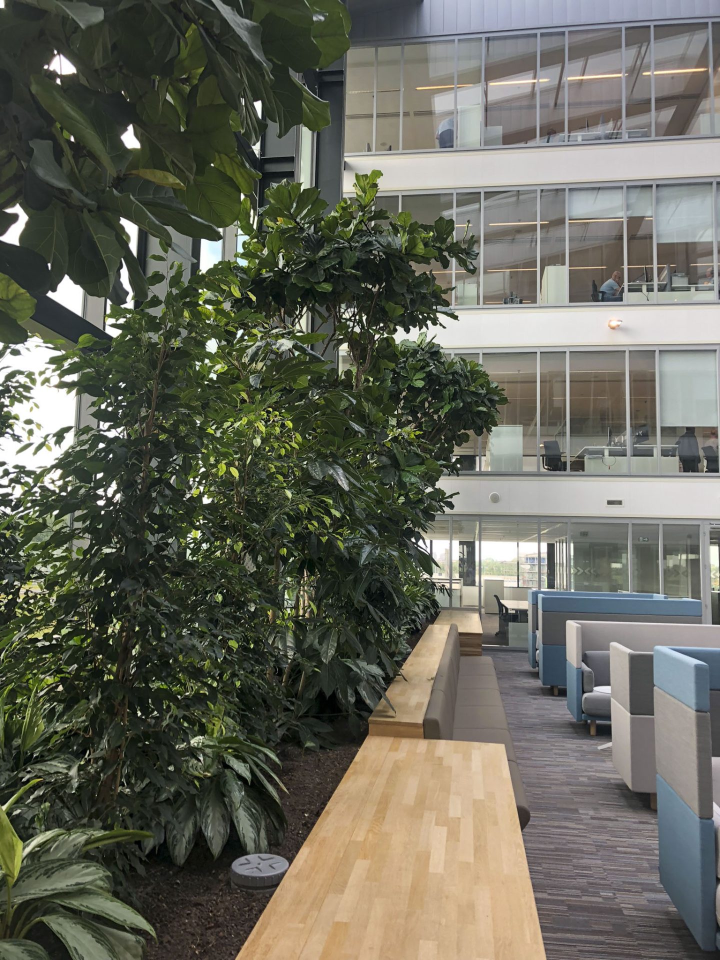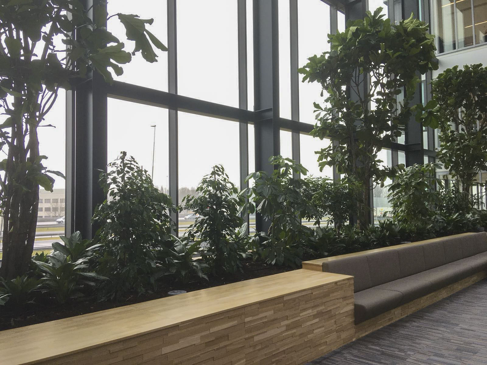 Bij Siemens in Zoeterwoude hebben we een plantenwand gerealiseerd met een grote binnentuin op de eerste etage.