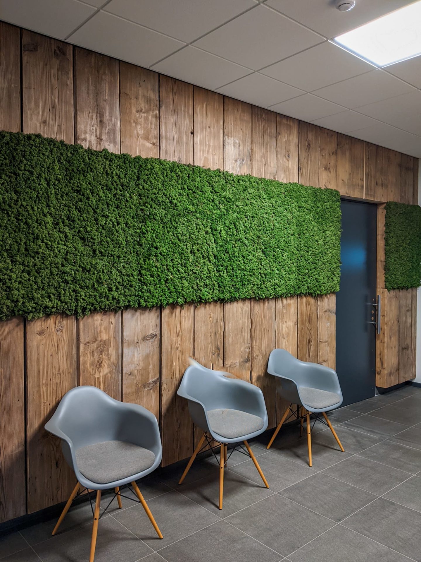 Een mosschilderij, ook wel moswand genoemd, is een mooie natuurlijke bekleding van je muur of wand. Het straalt groen uit en is goed voor de gezondheid van je medewerkers. Een mosschilderij zorgt voor een ontspannen en rustgevend gevoel, omdat er een omgeving wordt gecreëerd die als rustig wordt ervaren. Een mosschilderij is zo goed als onderhoudsvrij en heeft geen licht nodig om te overleven. Een mosschilderij op kantoor zorgt ook voor een geluidsabsorptie van tot wel 80% van de geluidsgolven waar het mee in aanraking komt. Kortom: de voordelen zijn enorm. Planting Power is de ideale partner voor uw mosschilderij op kantoor. Ook voor kantoorplanten en toebehoren ben je bij Planting Power aan het goede adres.